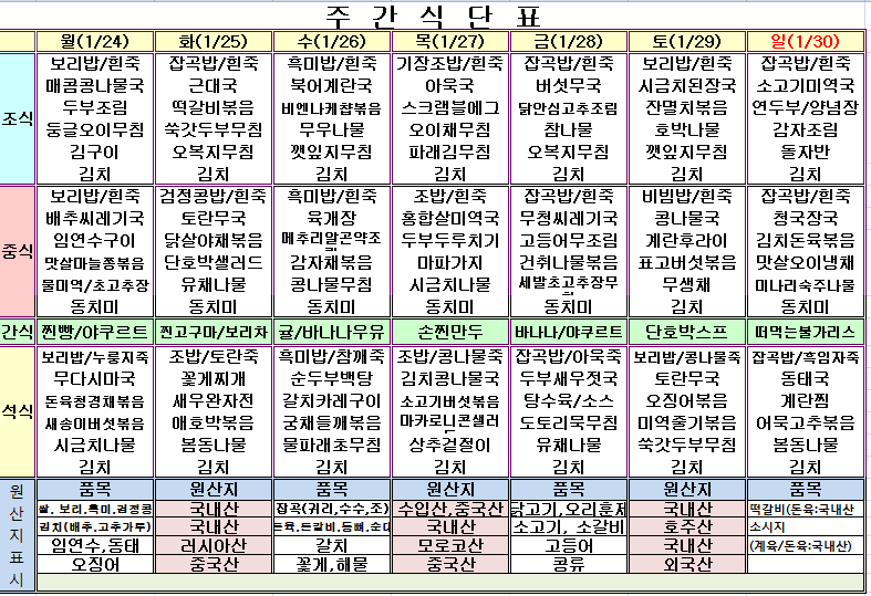 1¿ù 4ÁÖ ½Ä´ÜÇ¥