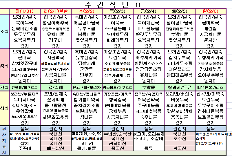 2¿ù 1ÁÖ ½Ä´ÜÇ¥