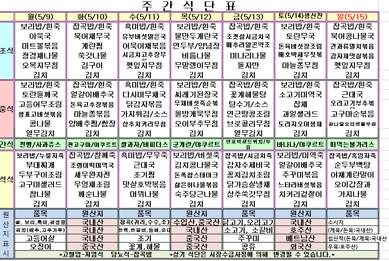 5¿ù 2ÁÖ ½Ä´ÜÇ¥