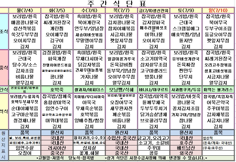7¿ù 2ÁÖ ½Ä´ÜÇ¥