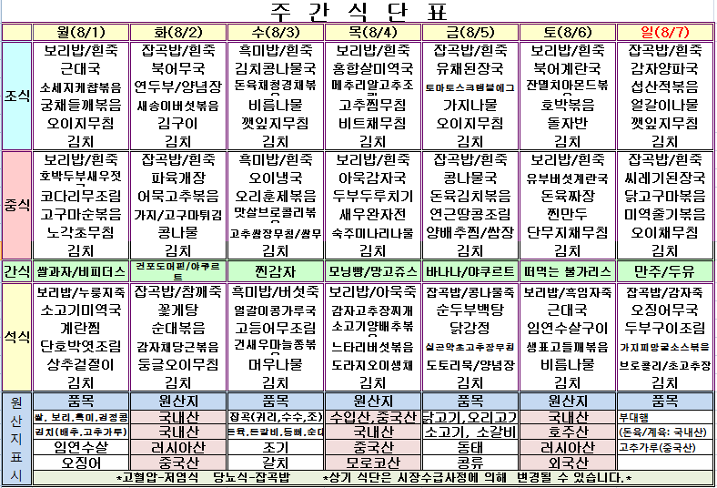 8¿ù 1ÁÖ ½Ä´ÜÇ¥