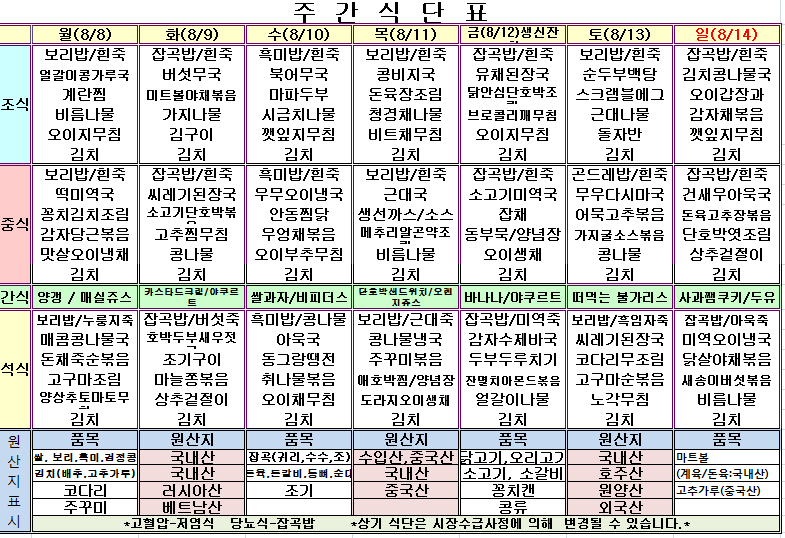 8¿ù 2ÁÖ ½Ä´ÜÇ¥