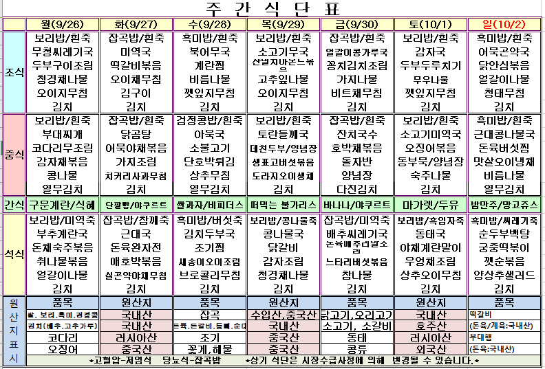 9¿ù 5ÁÖ ½Ä´ÜÇ¥