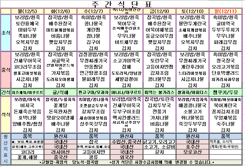 12¿ù 1ÁÖ ½Ä´ÜÇ¥