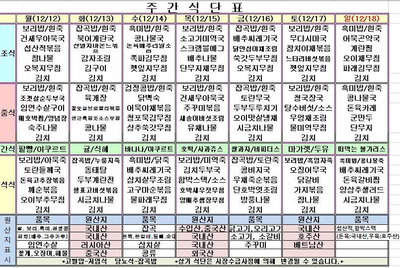 12¿ù 2ÁÖ ½Ä´ÜÇ¥