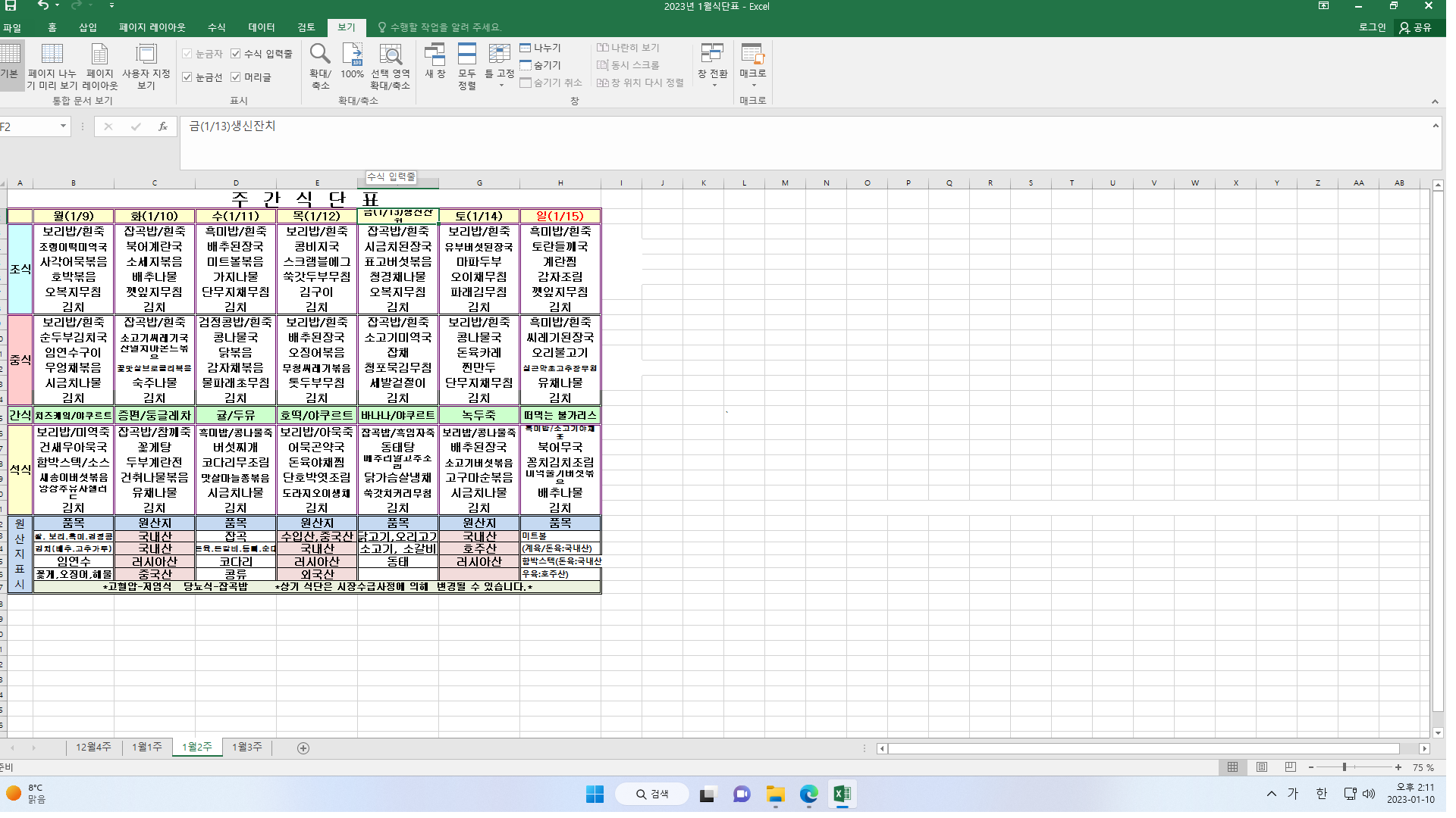 1¿ù 2ÁÖ ½Ä´ÜÇ¥
