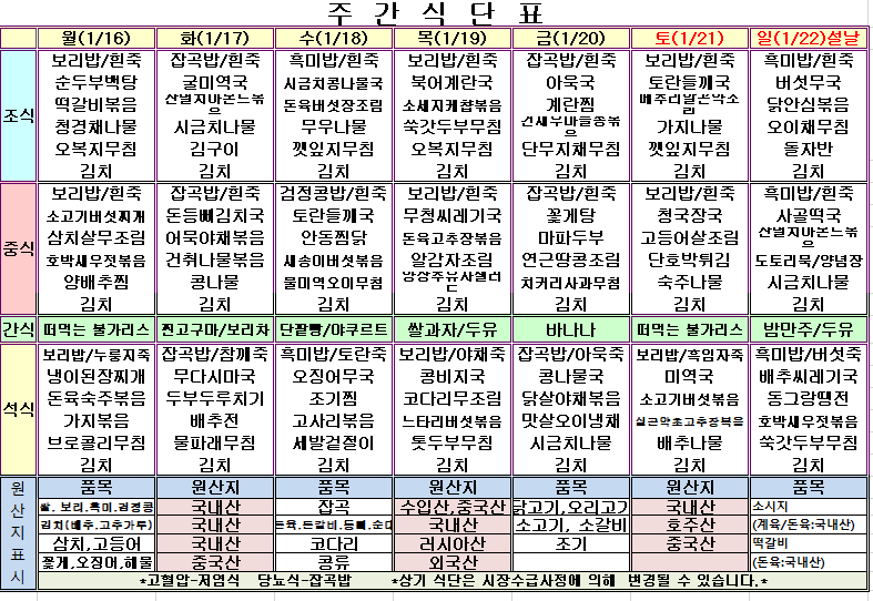 1¿ù 3ÁÖ ½Ä´ÜÇ¥