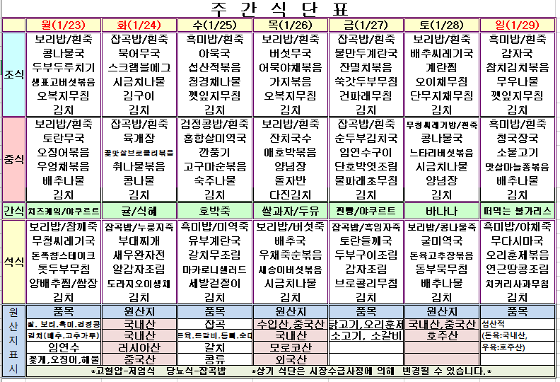 1¿ù 4ÁÖ ½Ä´ÜÇ¥