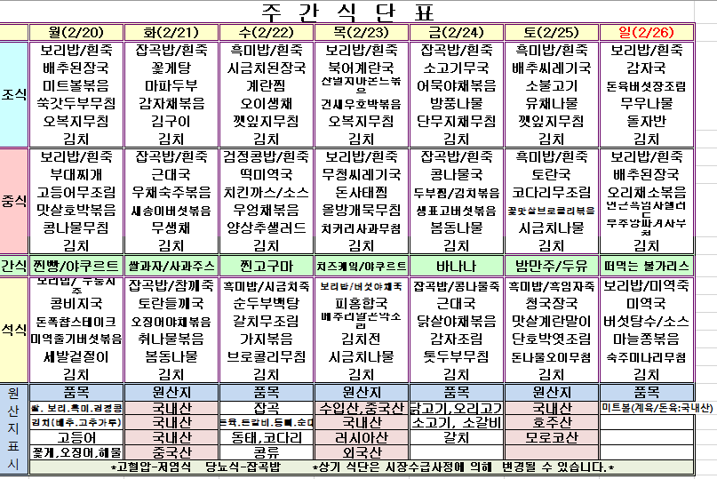 2¿ù 4ÁÖ ½Ä´ÜÇ¥