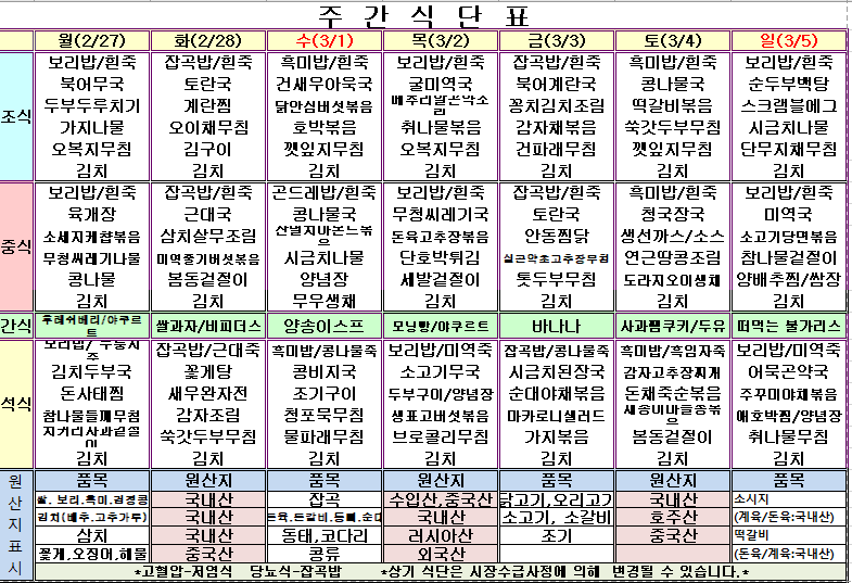 2¿ù 5ÁÖ ½Ä´ÜÇ¥