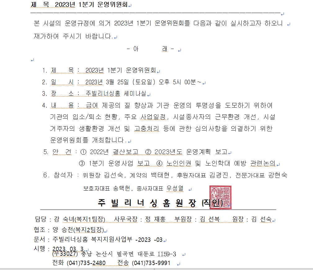 2023³â 1ºÐ±â ¿î¿µÀ§¿øÈ¸