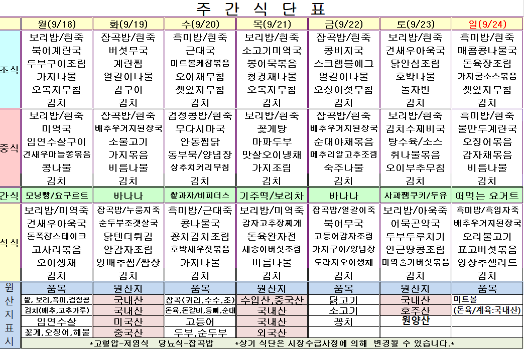 9¿ù 4ÁÖ ½Ä´ÜÇ¥