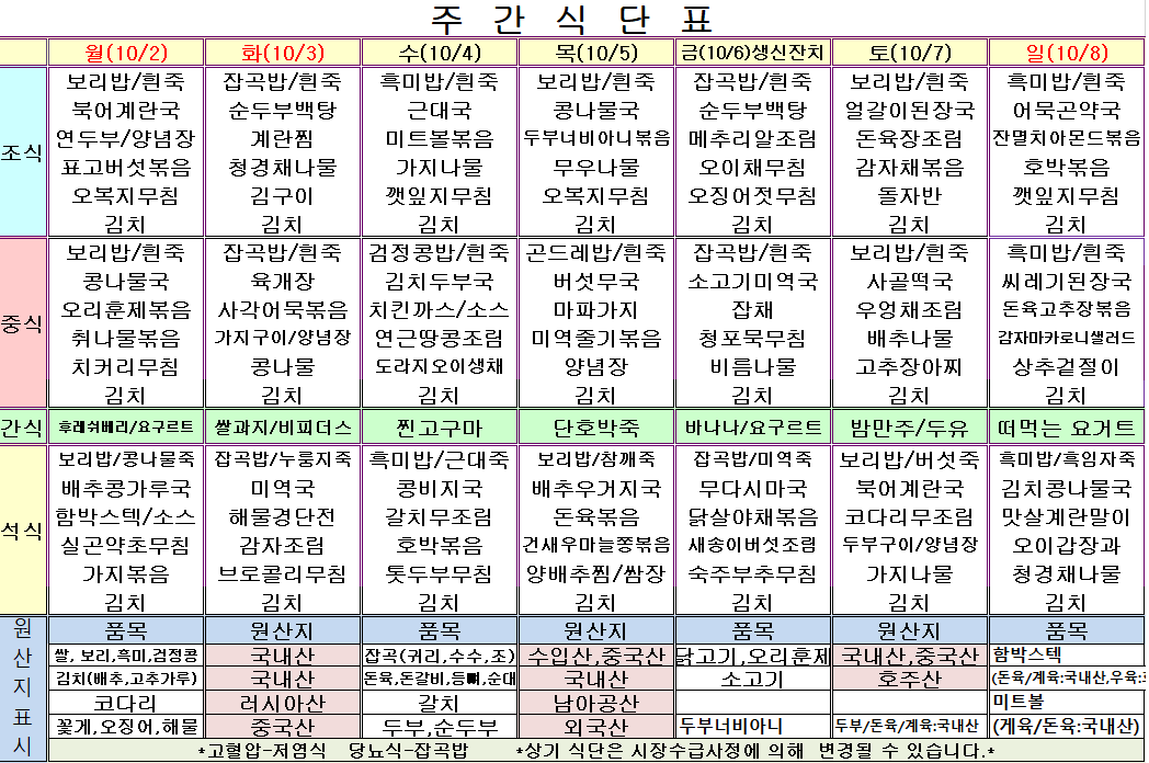 10¿ù 1ÁÖ ½Ä´ÜÇ¥