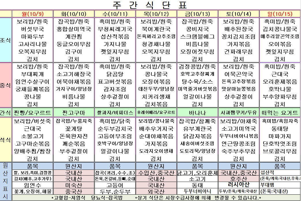 10¿ù 2ÁÖ ½Ä´ÜÇ¥