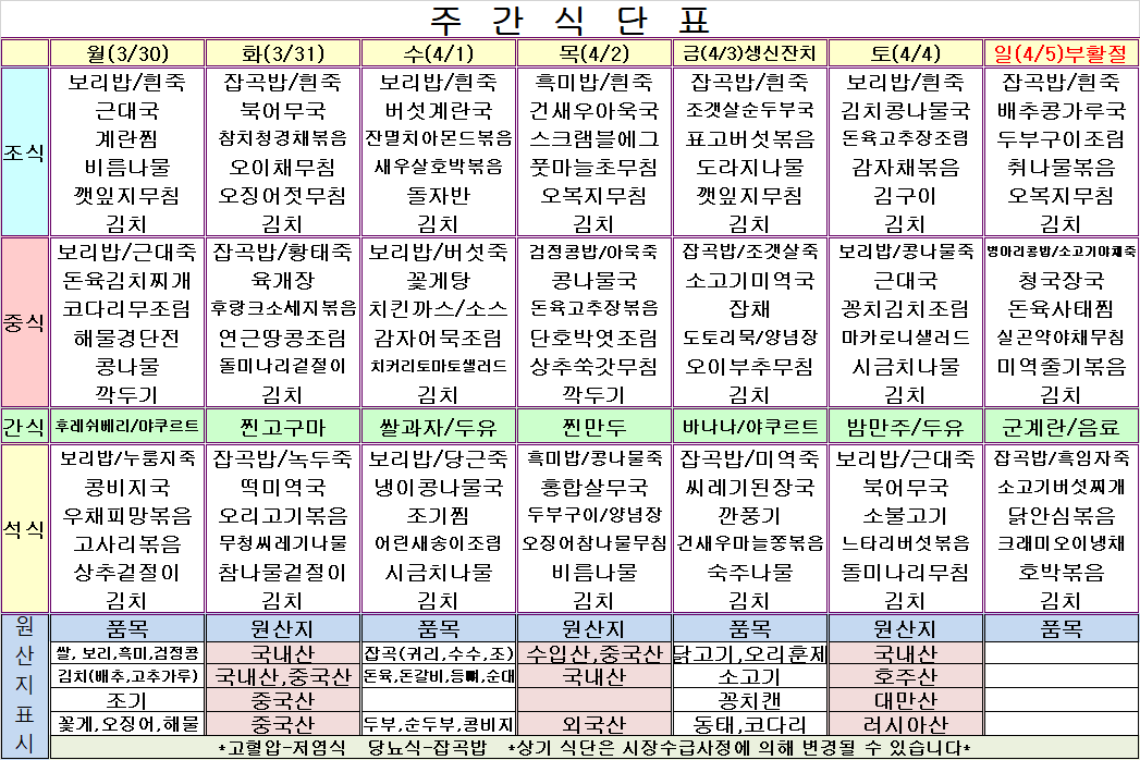 4¿ù 1ÁÖ ½Ä´ÜÇ¥