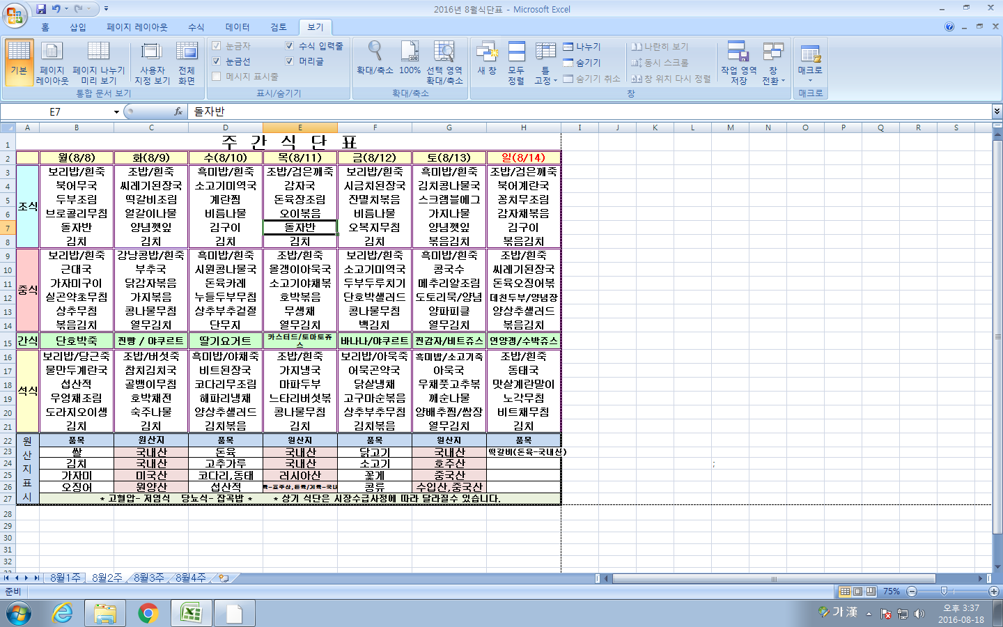 8¿ù 2ÁÖ ½Ä´ÜÇ¥