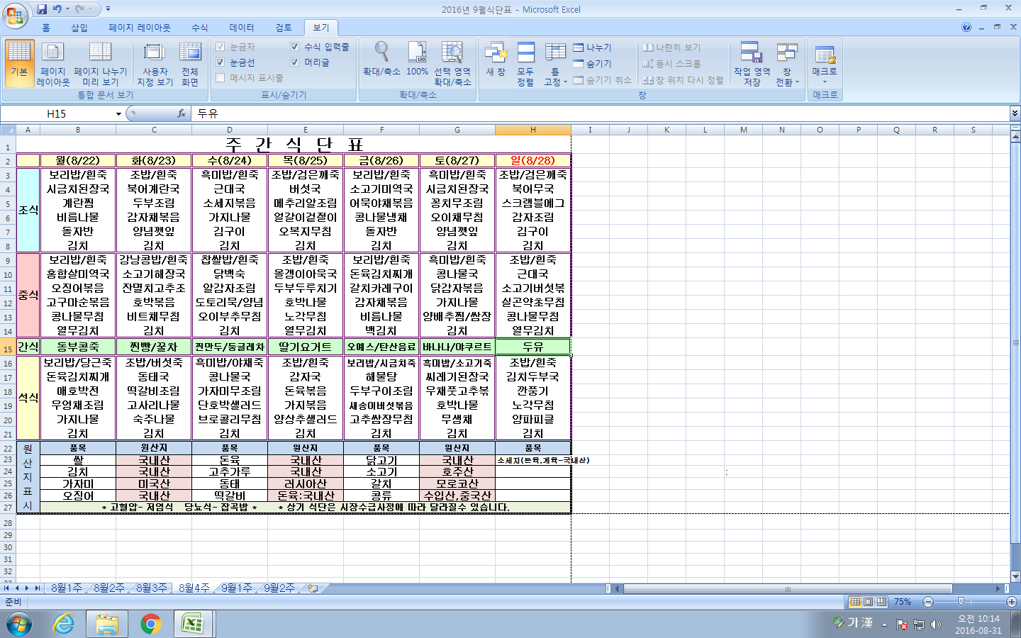 8¿ù 4ÁÖ ½Ä´ÜÇ¥