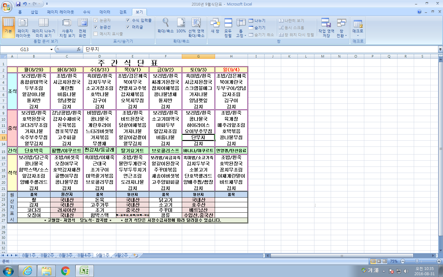 9¿ù 1ÁÖ ½Ä´ÜÇ¥