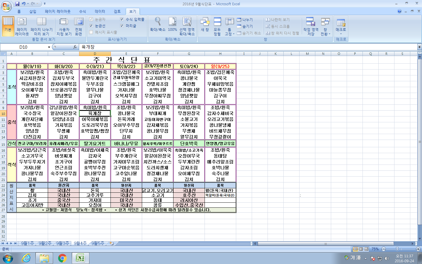 9¿ù 4ÁÖ ½Ä´ÜÇ¥
