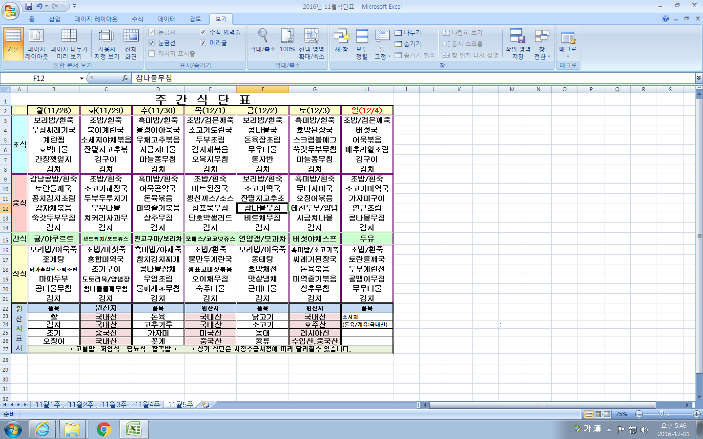11¿ù 5ÁÖ ½Ä´ÜÇ¥