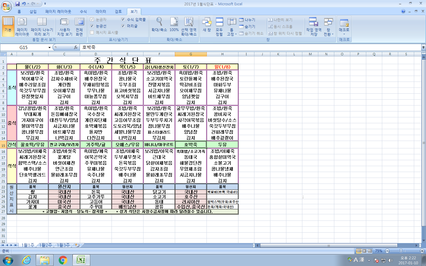 2017³â 1¿ù1ÁÖ ½Ä´ÜÇ¥