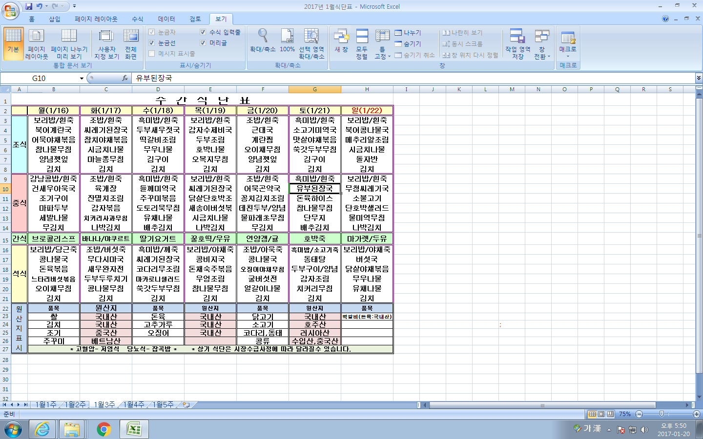 1¿ù 3ÁÖ ½Ä´ÜÇ¥