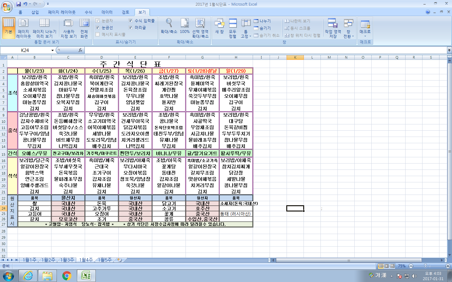 1¿ù 4ÁÖ ½Ä´ÜÇ¥