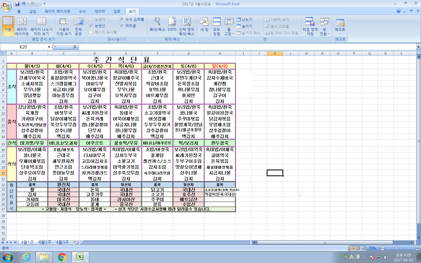 4¿ù 1ÁÖ ½Ä´ÜÇ¥