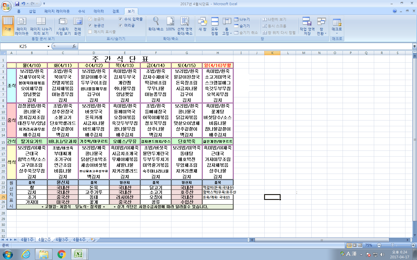 4¿ù 2ÁÖ ½Ä´ÜÇ¥