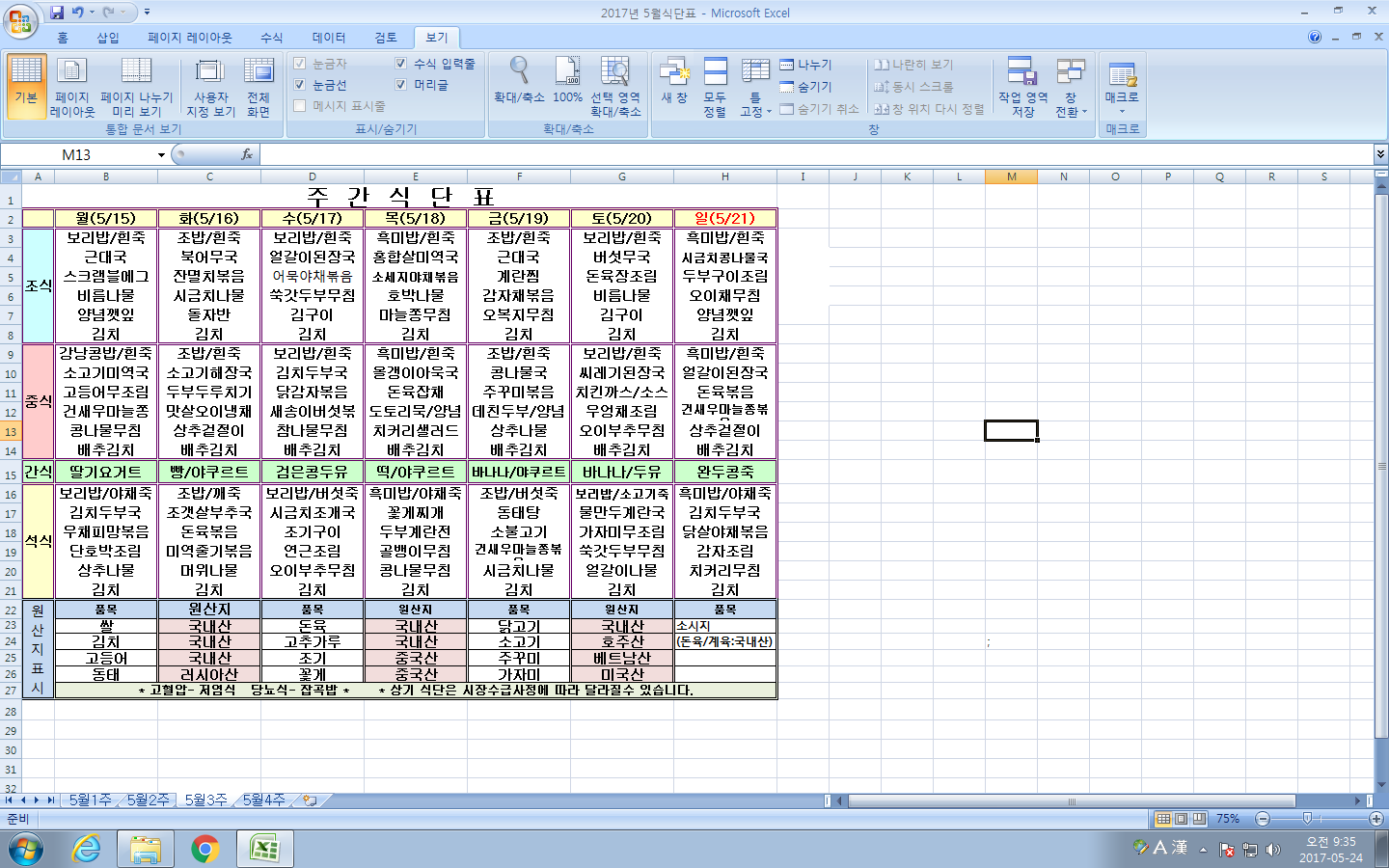 5¿ù 3ÁÖ ½Ä´ÜÇ¥