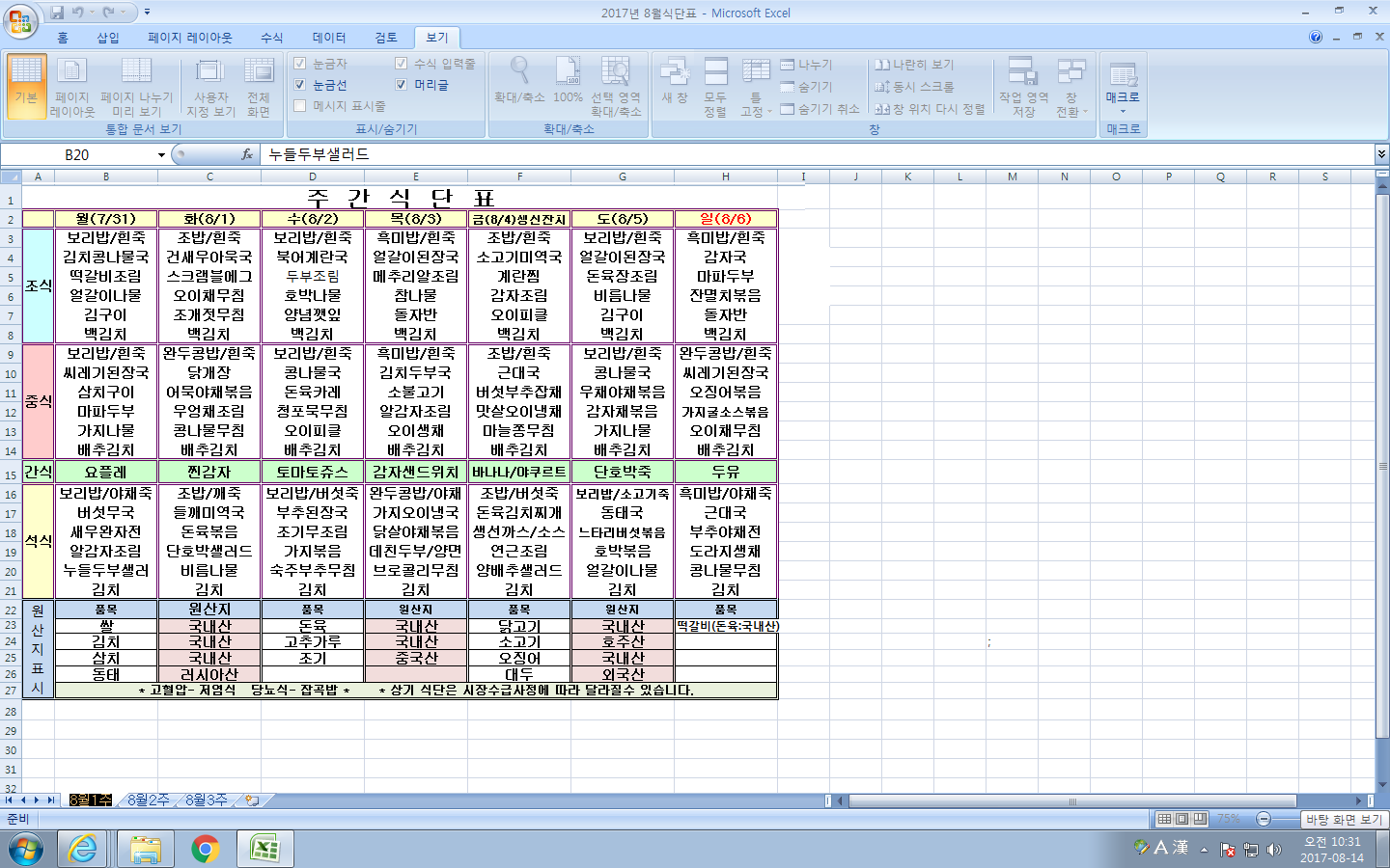 8¿ù 1ÁÖ ½Ä´ÜÇ¥