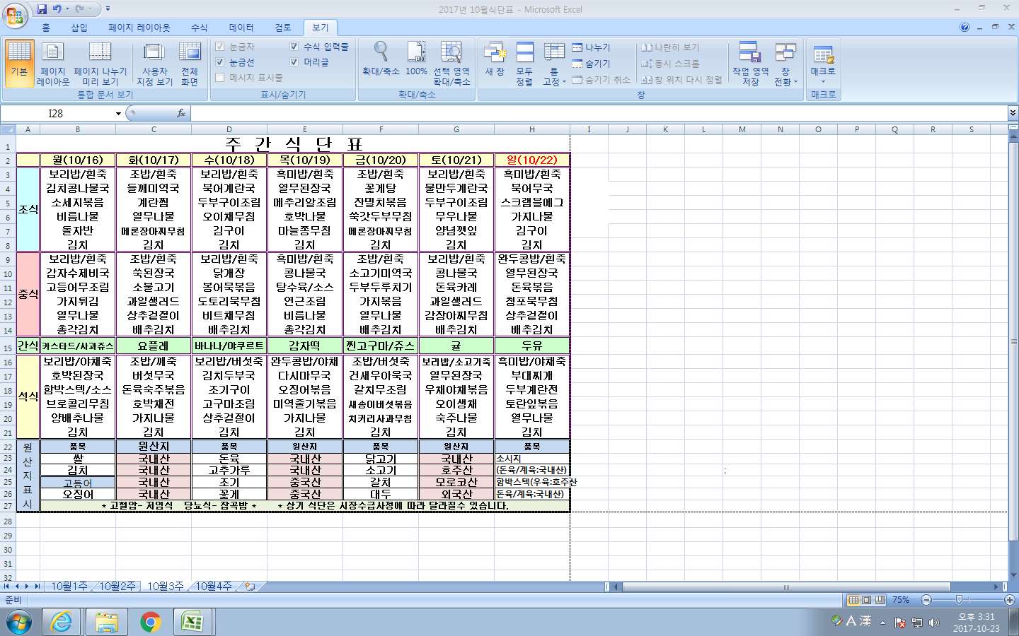 10¿ù 3ÁÖ ½Ä´ÜÇ¥