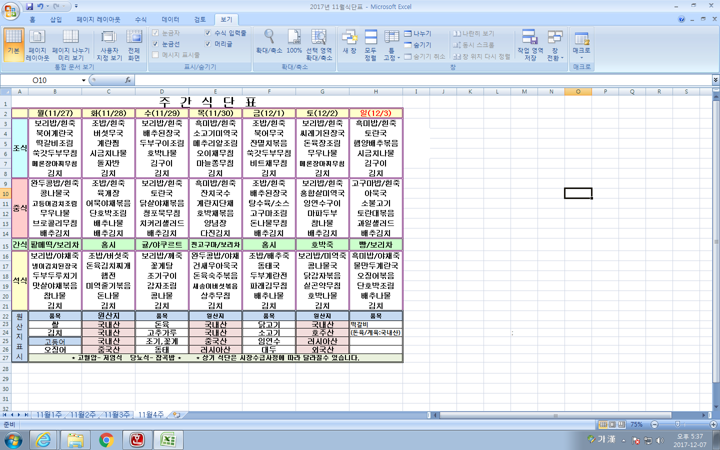 11¿ù 4ÁÖ ½Ä´ÜÇ¥