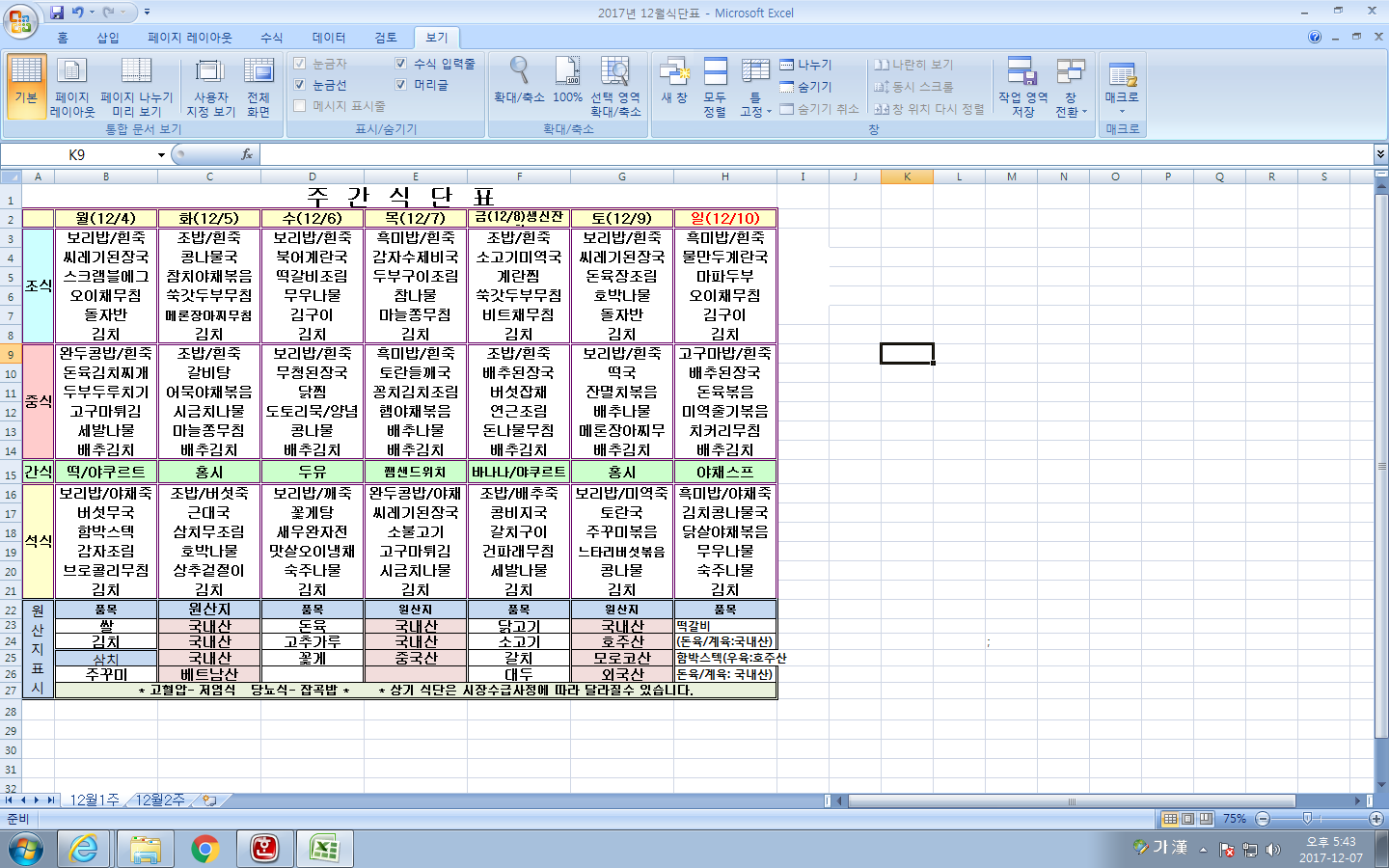 12¿ù 1ÁÖ ½Ä´ÜÇ¥