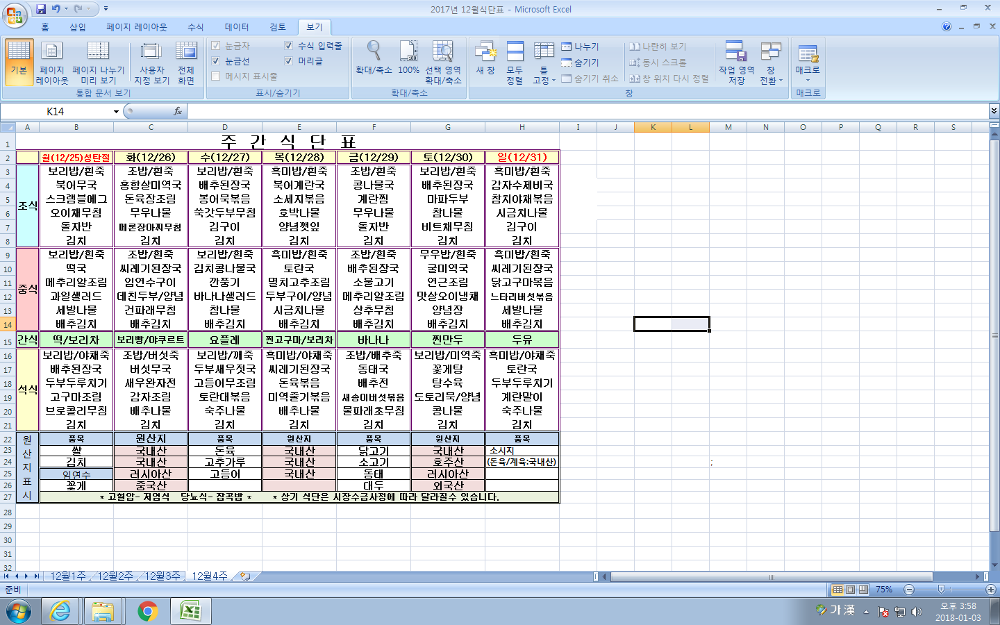 12¿ù4ÁÖ ½Ä´ÜÇ¥