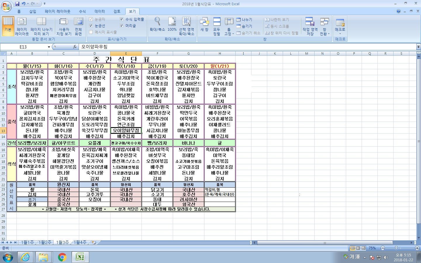 1¿ù 3ÁÖ ½Ä´ÜÇ¥