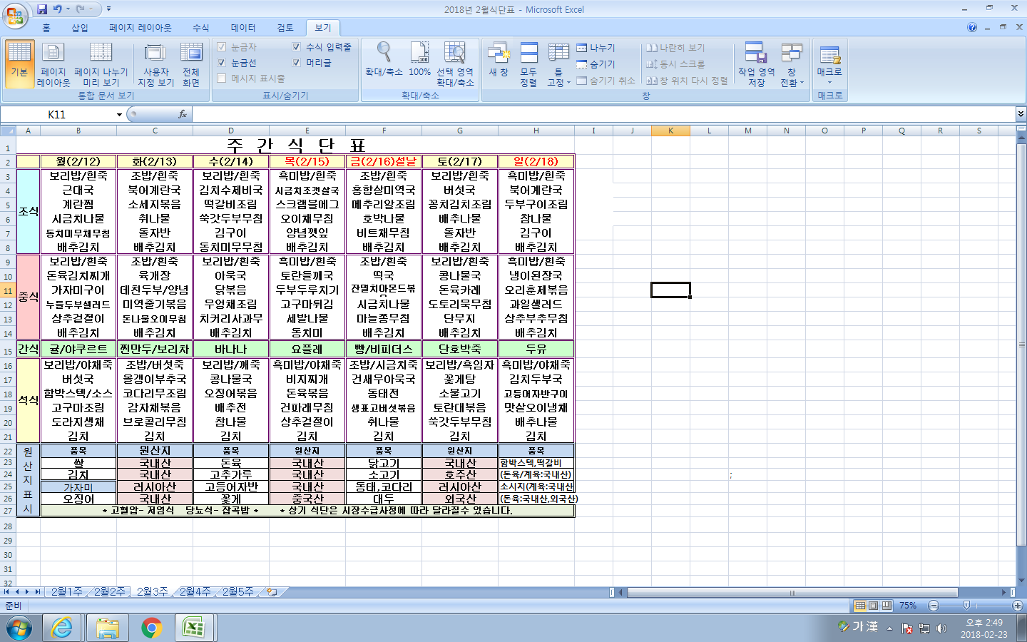 2¿ù3ÁÖ ½Ä´ÜÇ¥