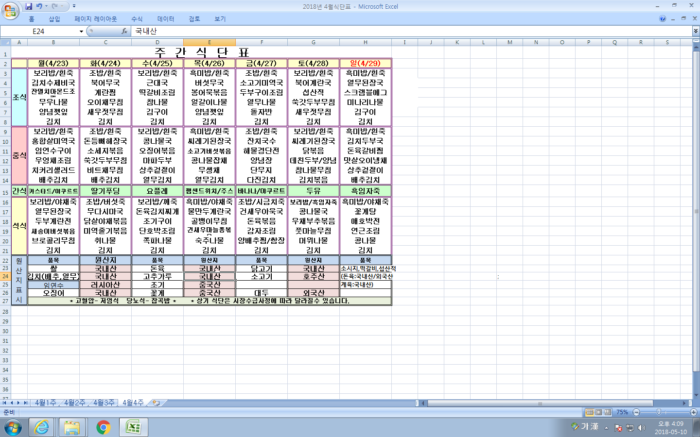 4¿ù 4ÁÖ ½Ä´ÜÇ¥