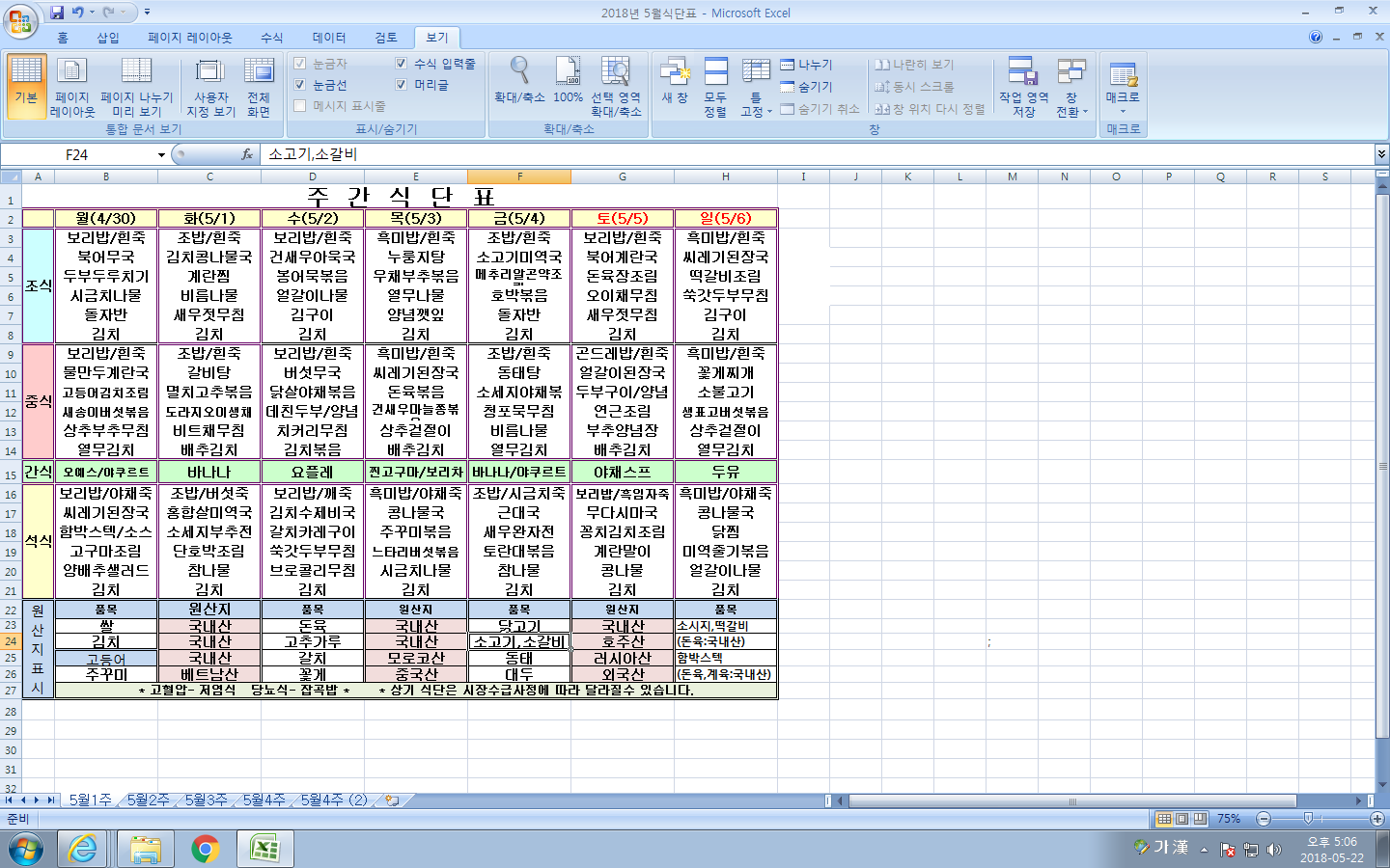 5¿ù 1ÁÖ ½Ä´ÜÇ¥