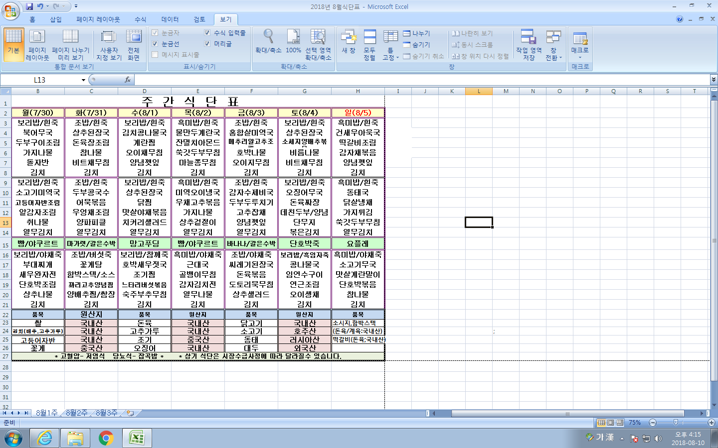 8¿ù 1ÁÖ ½Ä´ÜÇ¥