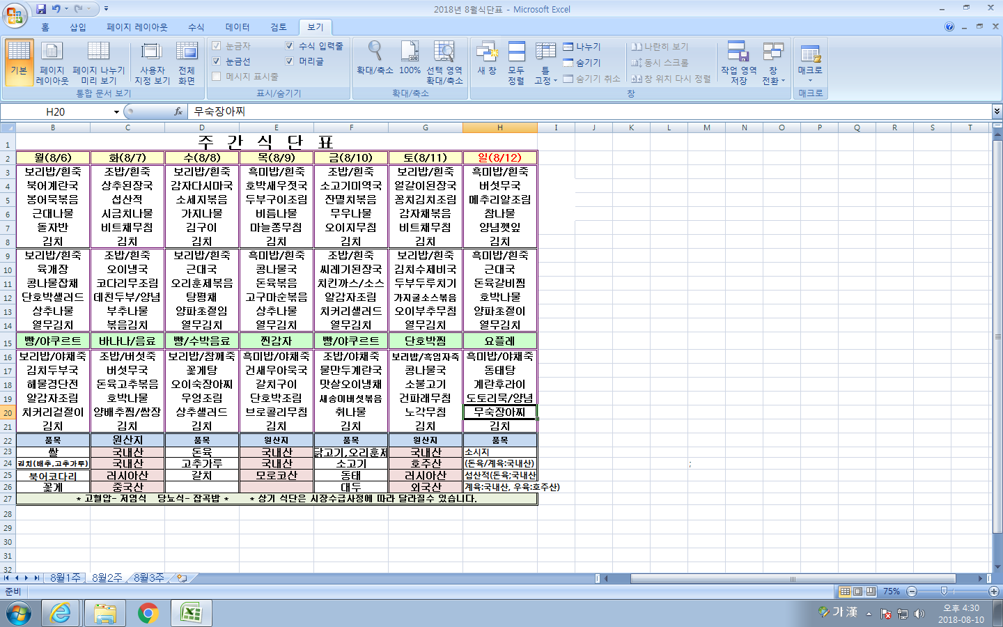 8¿ù 2ÁÖ ½Ä´ÜÇ¥