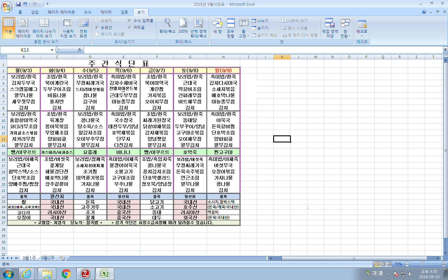 9¿ù 1ÁÖ ½Ä´ÜÇ¥