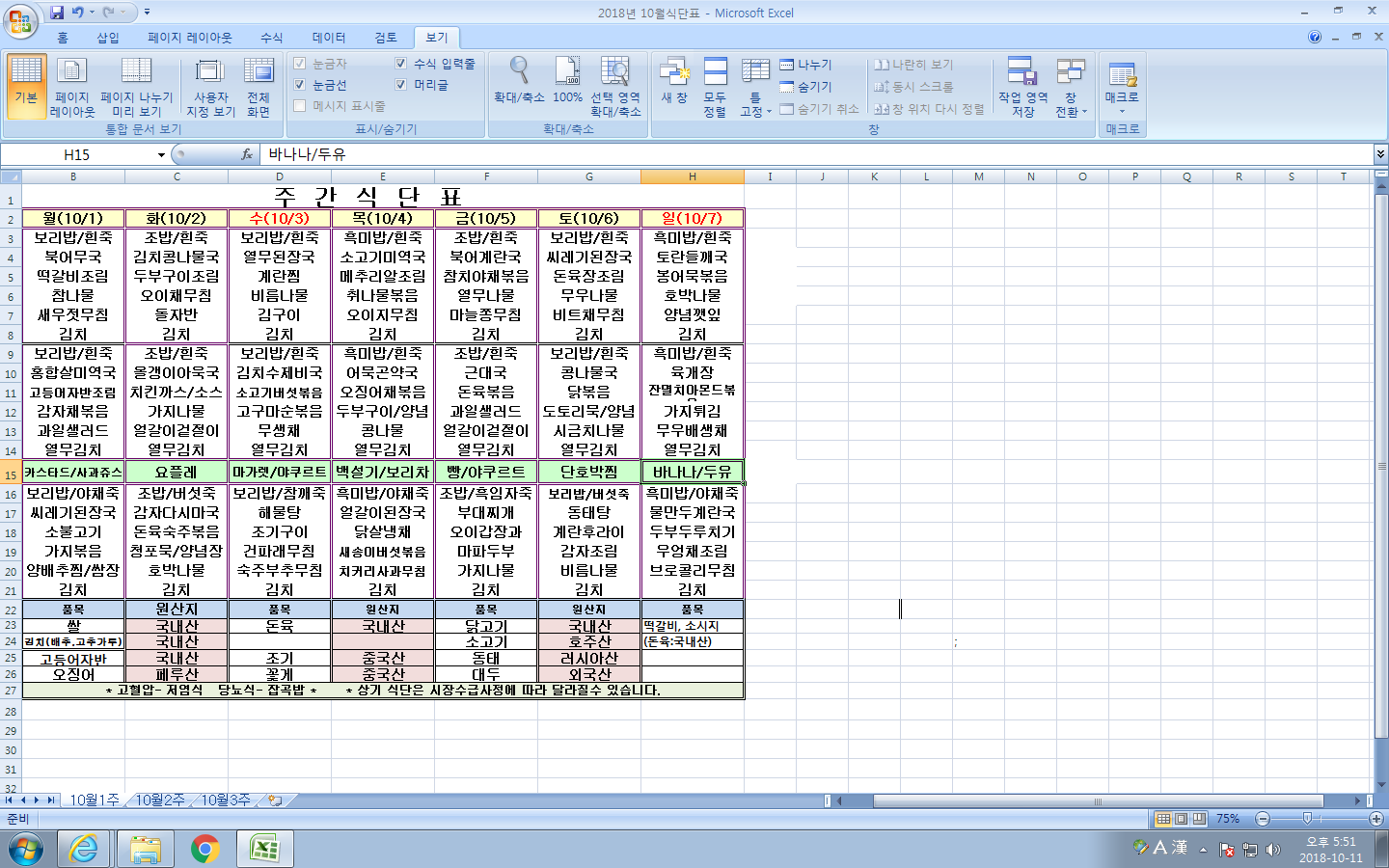 10¿ù 1ÁÖ ½Ä´ÜÇ¥