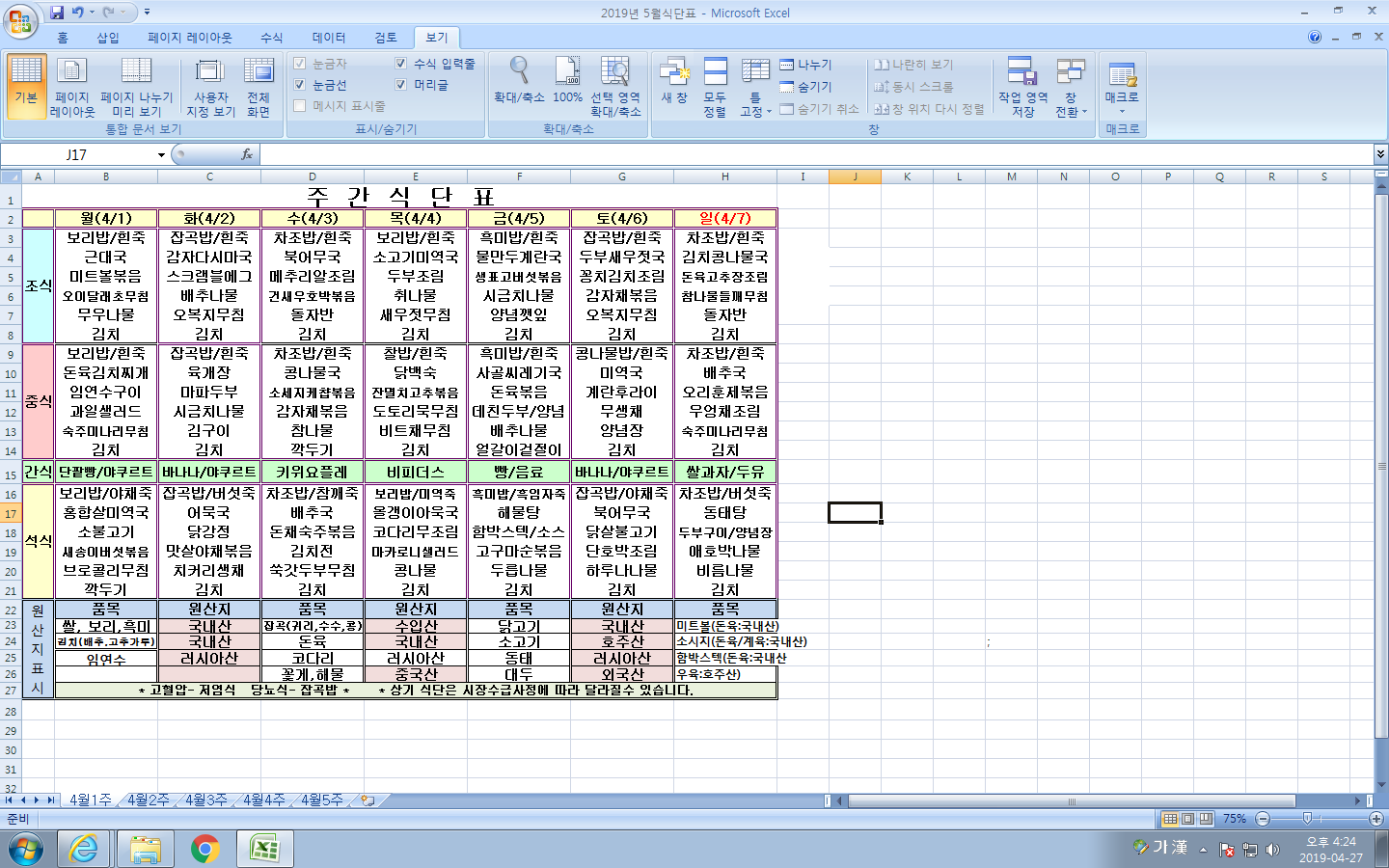 4¿ù 1ÁÖ ½Ä´ÜÇ¥