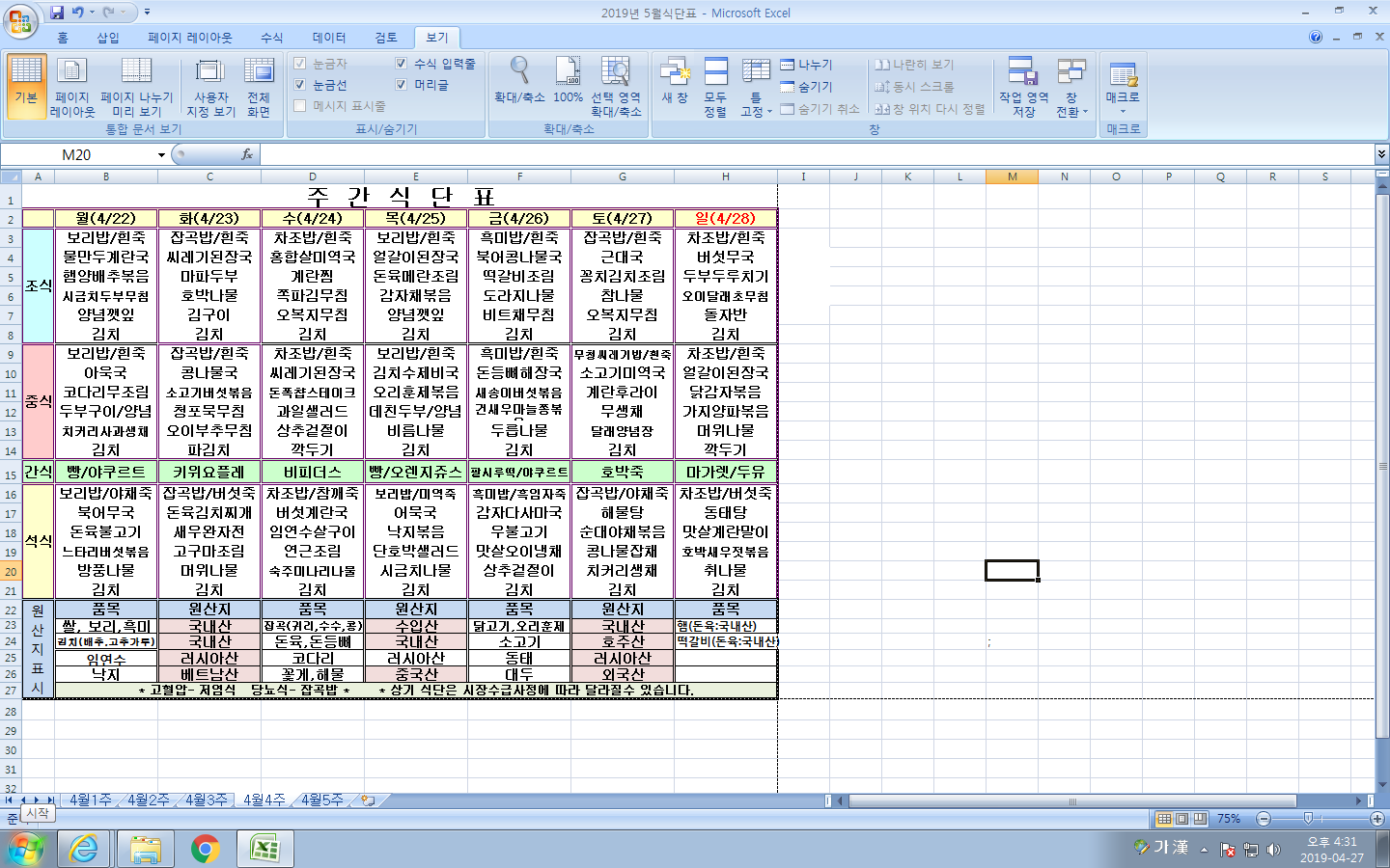 4¿ù 4ÁÖ ½Ä´ÜÇ¥