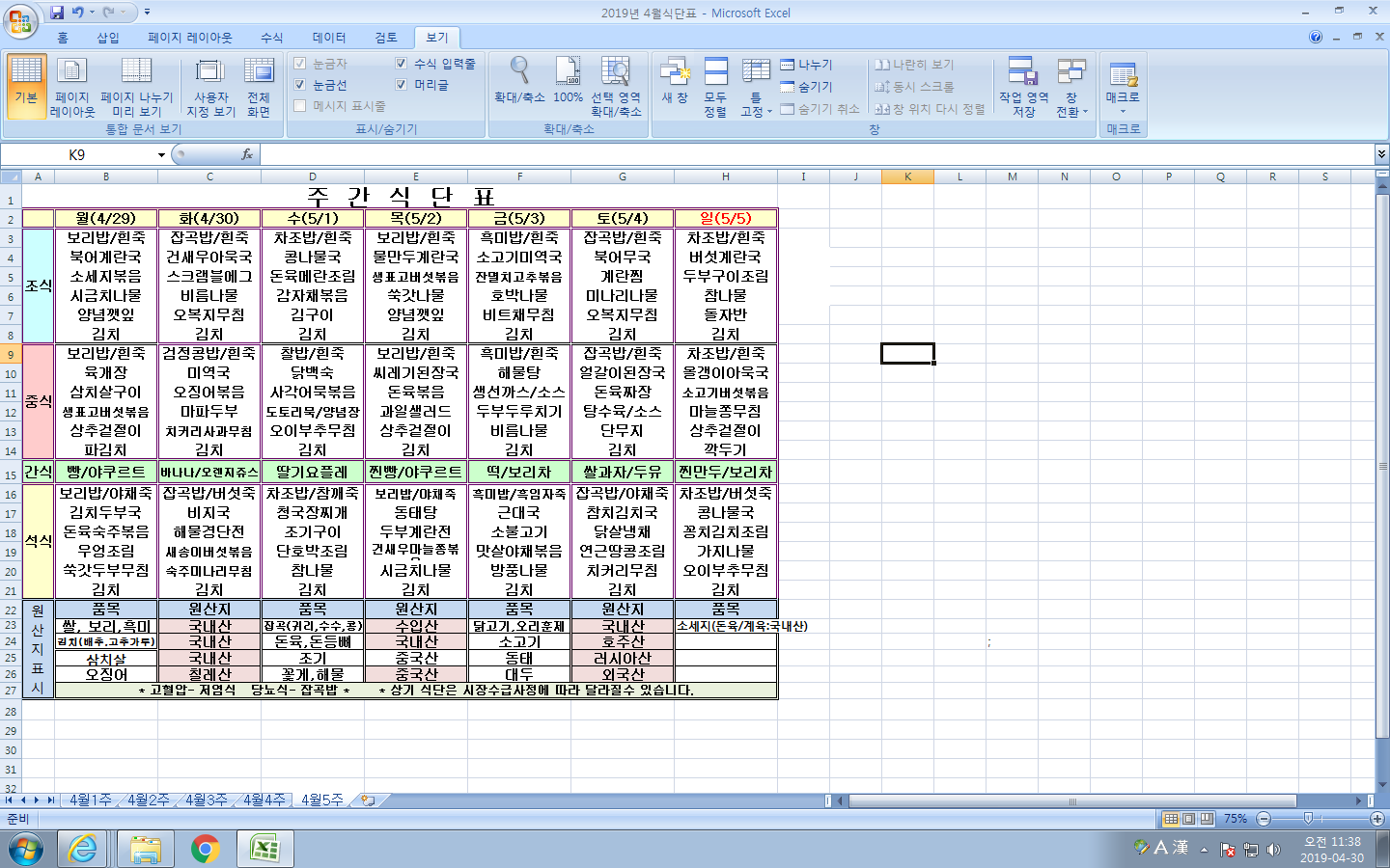 4¿ù 5ÁÖ ½Ä´ÜÇ¥