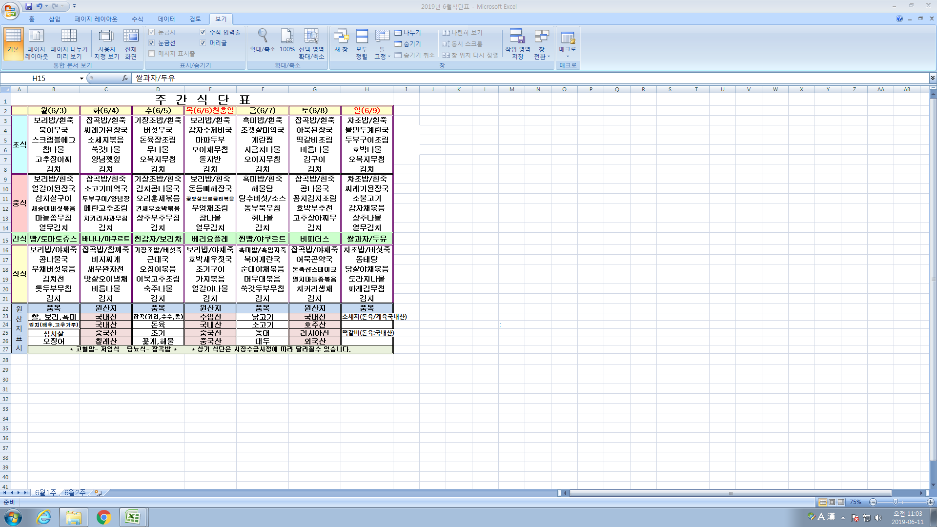 6¿ù 1ÁÖ ½Ä´ÜÇ¥