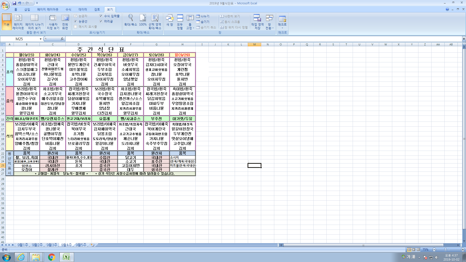 9¿ù 4ÁÖ ½Ä´ÜÇ¥