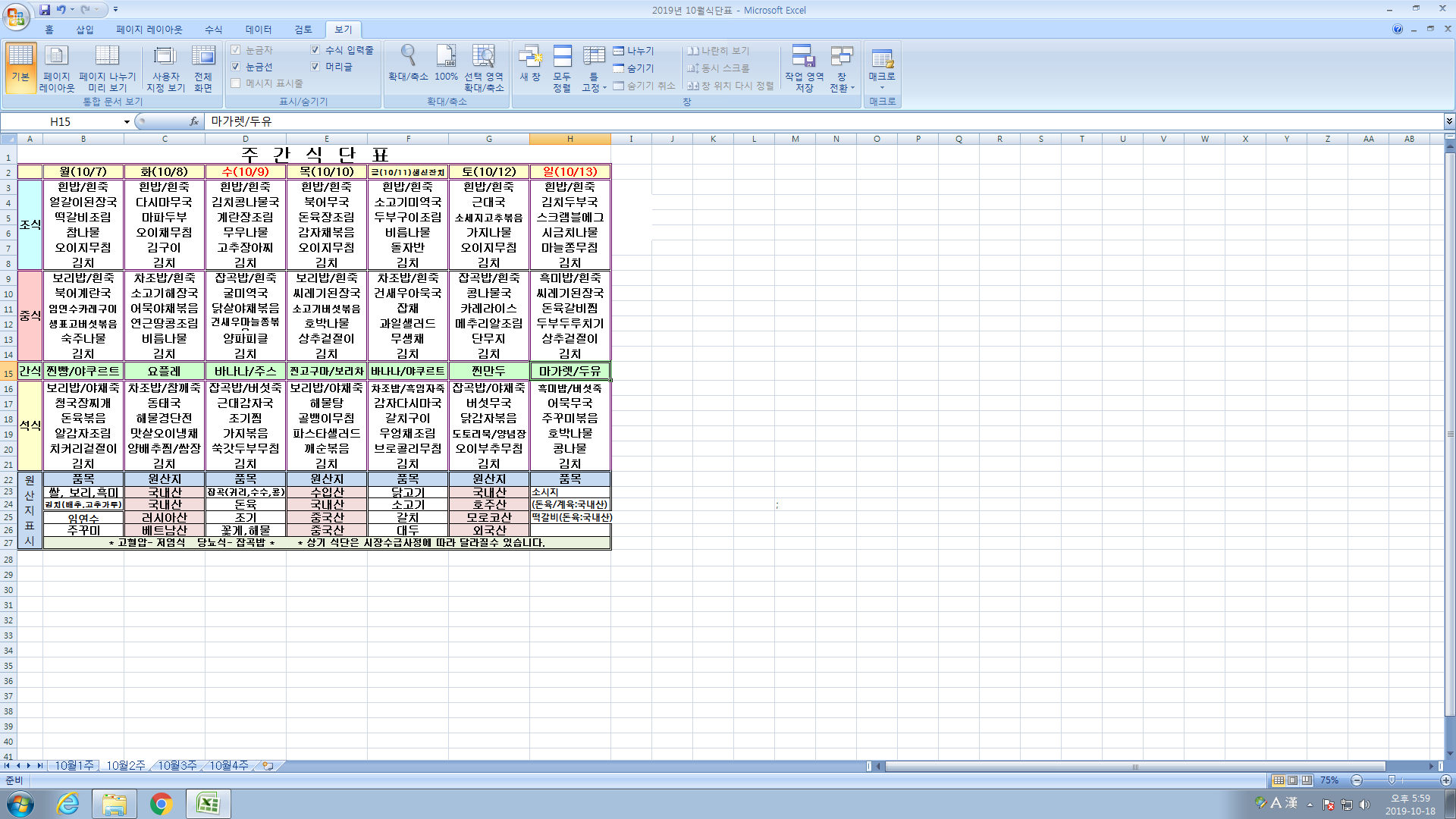 10¿ù 2ÁÖ ½Ä´ÜÇ¥