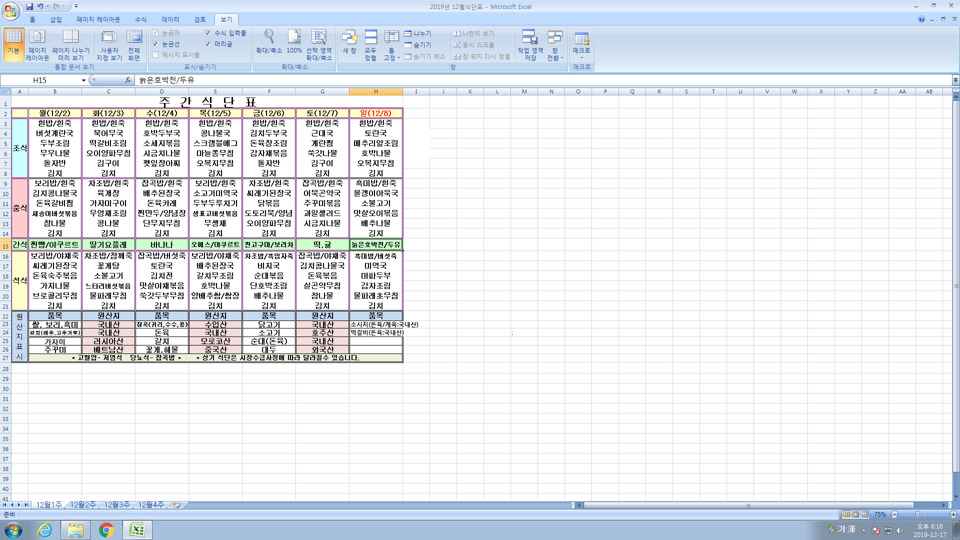 12¿ù 1ÁÖ ½Ä´ÜÇ¥